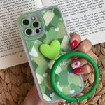 قاب موبایل آیفون تک دل حصیری سبز حلقه دار محافظ لنزدار