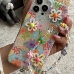 قاب موبایل ( آیفون ) گل بابونه رنگی رنگی برجسته + بندست
