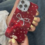 قاب موبایل ( آیفون – سامسونگ ) پروانه آموره نگین دار برجسته شاینی + بندست