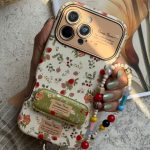 قاب موبایل آیفون گل طلایی انگلیسی الگانس محافظ لنزدار