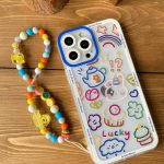 قاب موبایل آیفون خرس و پروانه نقاشی + بندست کوتاه