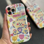 قاب موبایل آیفون خرس نقاشی آبرنگی پایه استند دار
