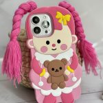 قاب موبایل آیفون باربی پاپیونی صورتی + بند بلند
