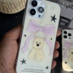 قاب موبایل آیفون سگ پاپی ستاره پاپیون صورتی