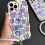 قاب موبایل آیفون شاخه گل ارغوانی محافظ لنزدار