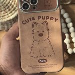 قاب موبایل آیفون سگ پاپی شکلاتی آیینه ای بند کوتاه