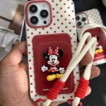 قاب موبایل آیفون میکی برجسته خال خالی جاکارتی بنددار