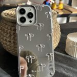 قاب موبایل آیفون بونات پاپیون شاینی نقره ای تک مروارید