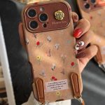 قاب موبایل آیفون سن لورن دم روباهی پروانه گل سرخ + بندست پشمی