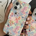 قاب موبایل آیفون دم روباهی پروانه گل سرخ + بندست پشمی