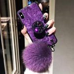 قاب موبایل سامسونگ ماربل پام پام بنفش + پاپ سوکت + پام پام