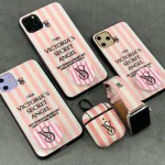 قاب موبایل ویکتوریا پشت گلس راه راه پاپ سوکت رایگان ( صورتی + سفید )