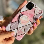 قاب موبایل آیفون کاشی ماربل لوزی + پاپ سوکت