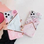 قاب موبایل آیفون کاشی ماربل گل خط طلایی ( Gold line )