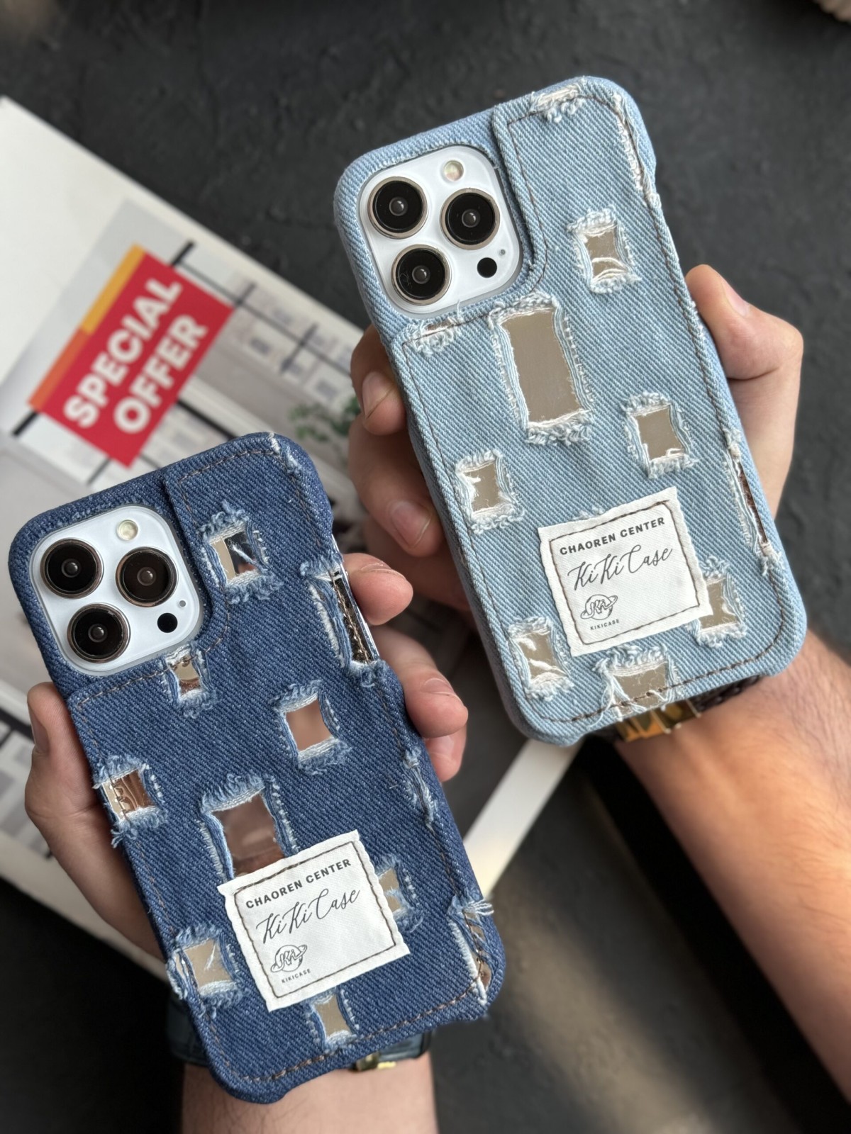 قاب موبایل آیفون جین و پارچه زاپ دار