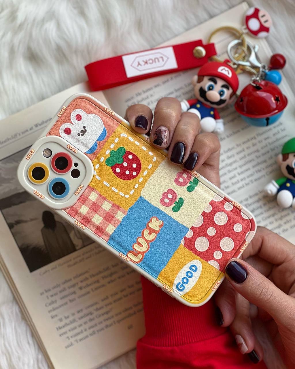 قاب موبایل آیفون خانه انگلیسی توت فرنگی محافظ لنزدار