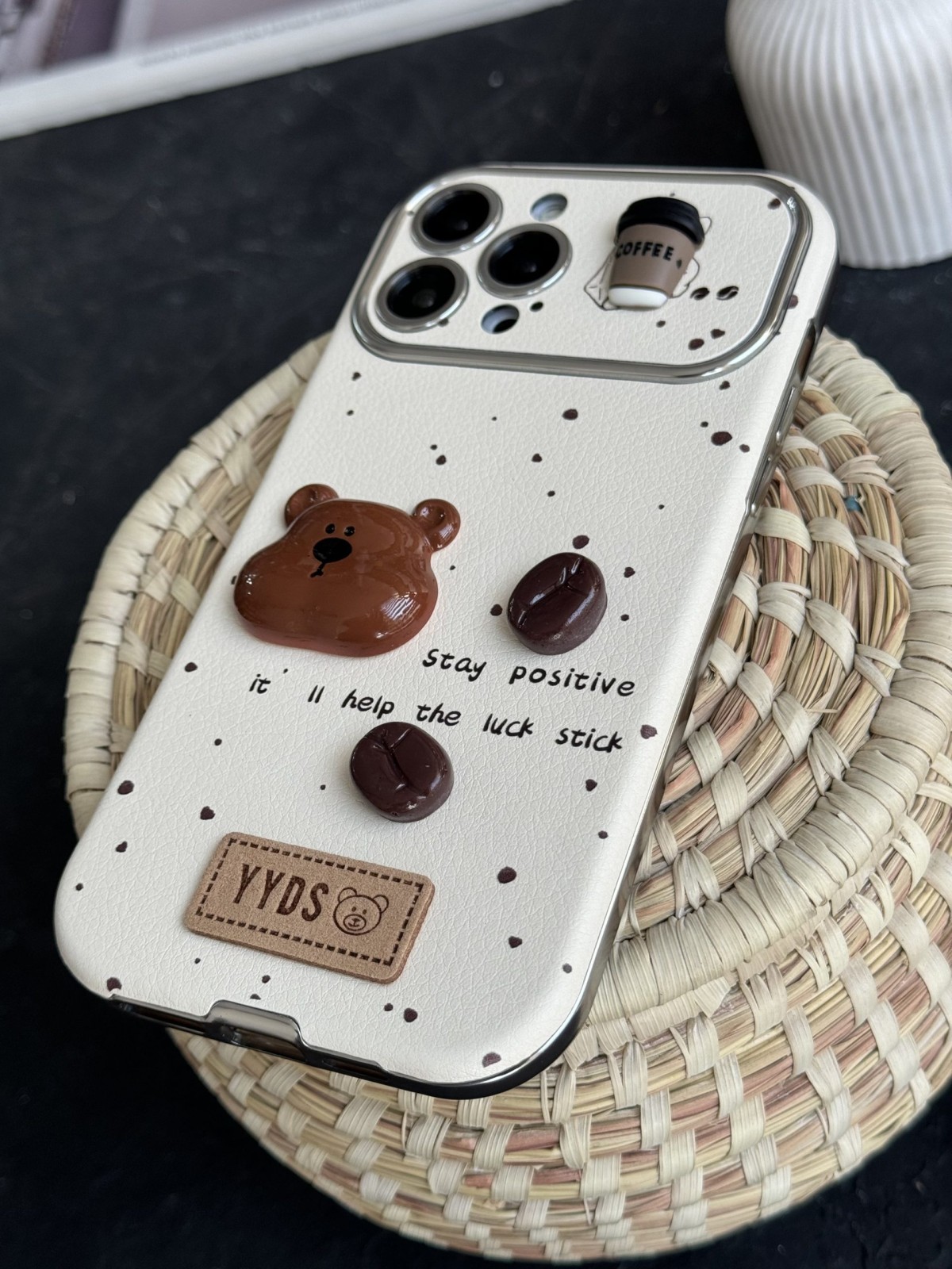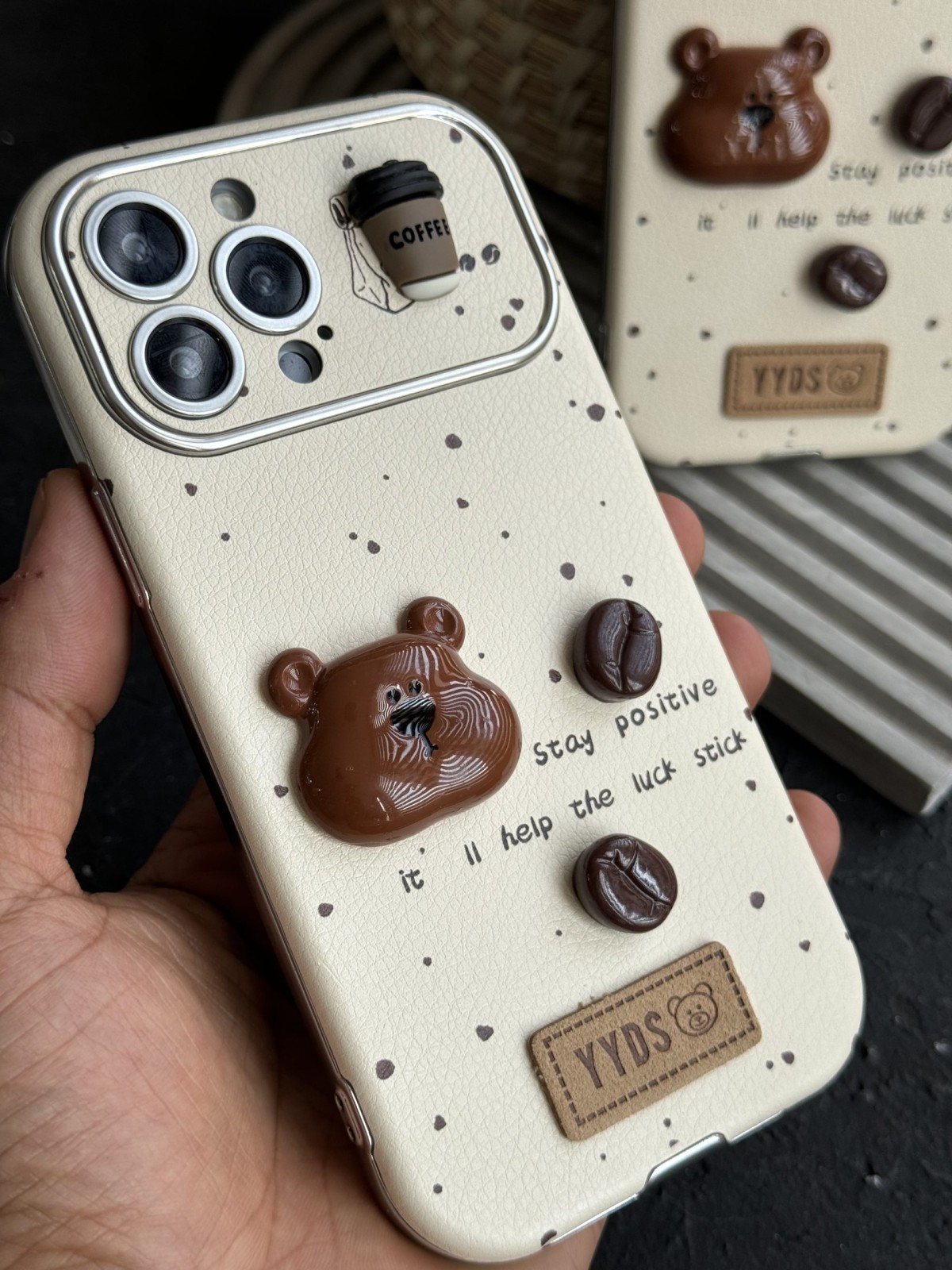قاب موبایل آیفون خرس دانه قهوه محافظ لنزدار