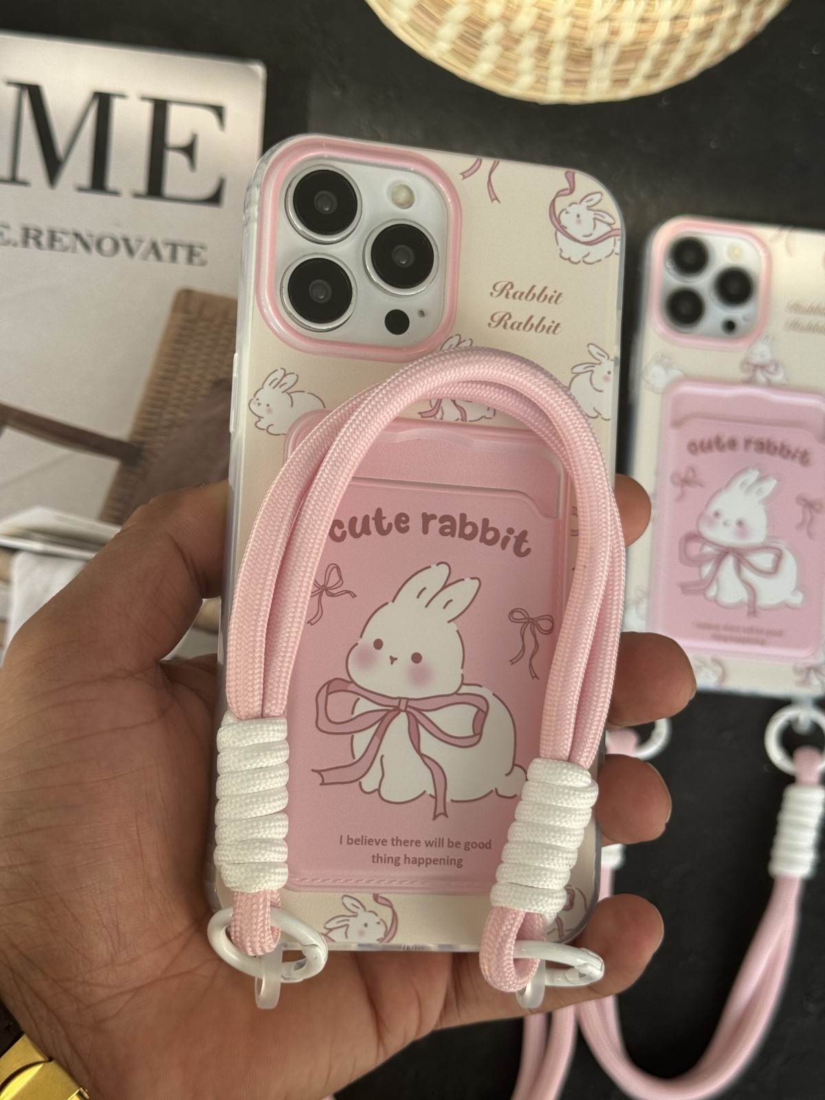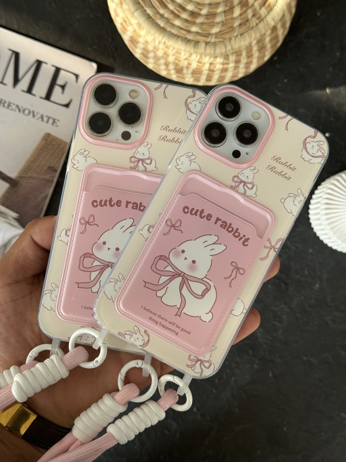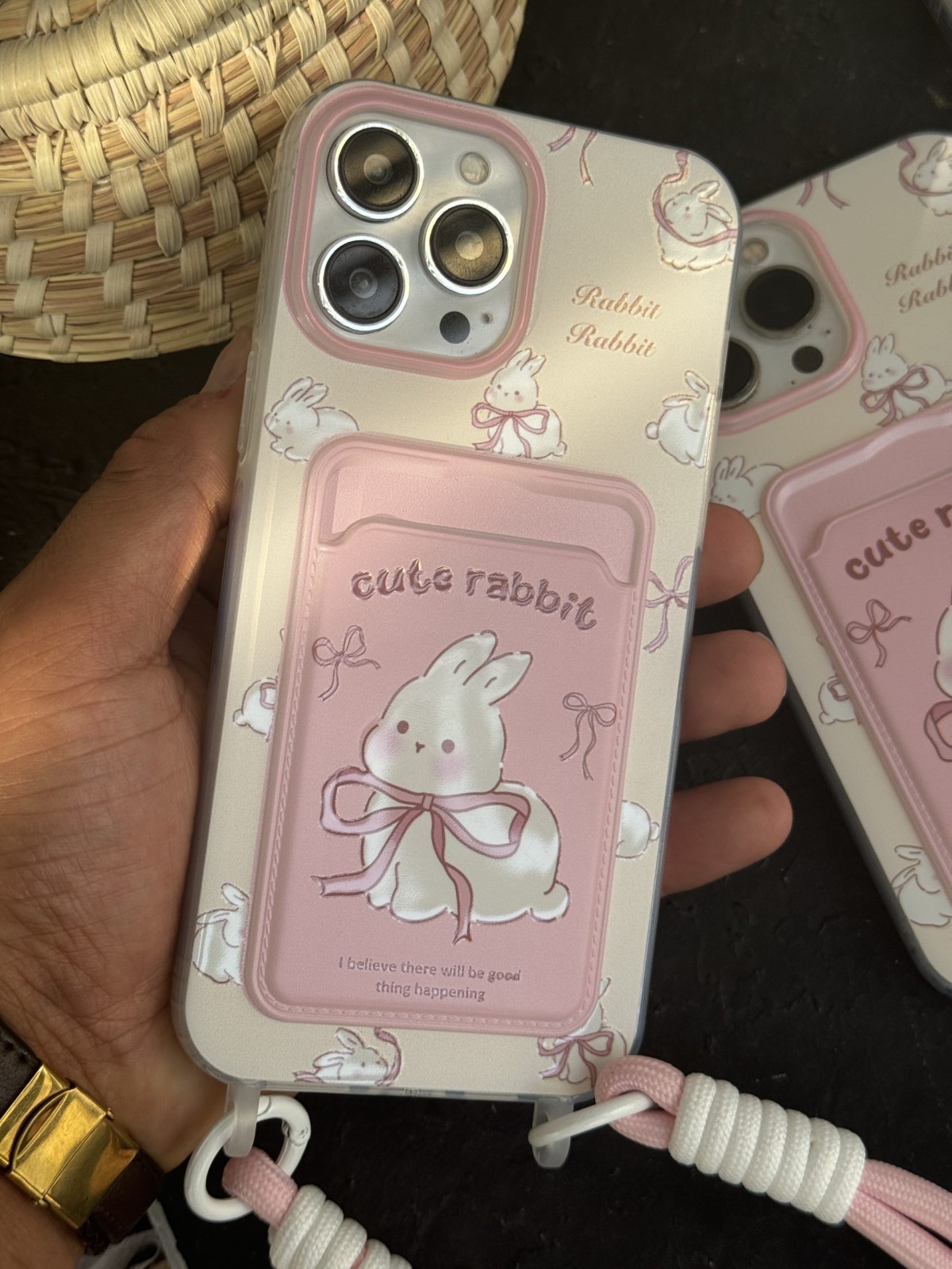 قاب موبایل آیفون خرگوش کیوت ربیت جاکارتی پاپیون دار بندی
