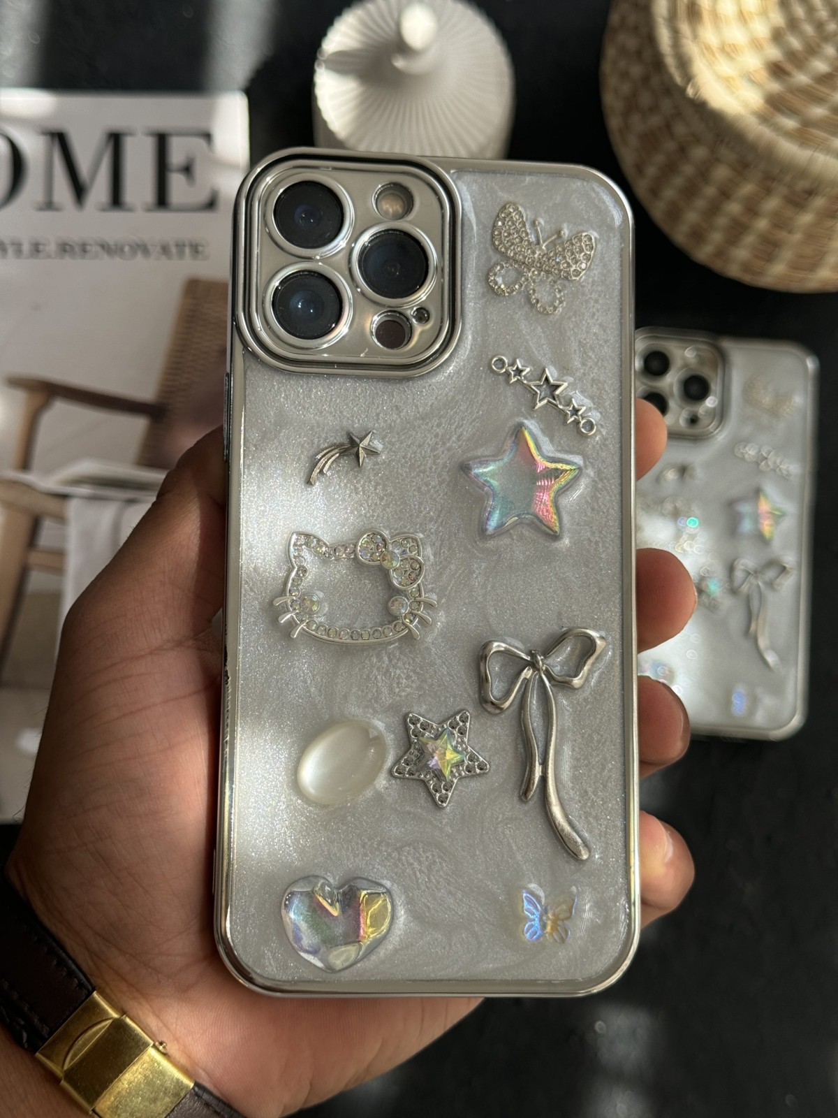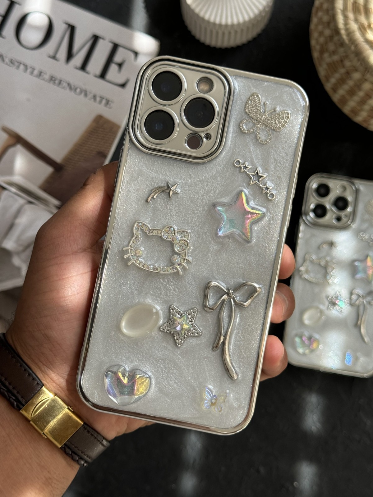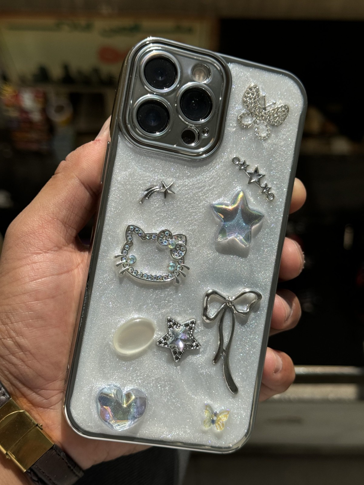 قاب موبایل ( آیفون – سامسونگ ) ترندی کیس پروانه پاپیون هلوکیتی قلب ستاره نگین دار