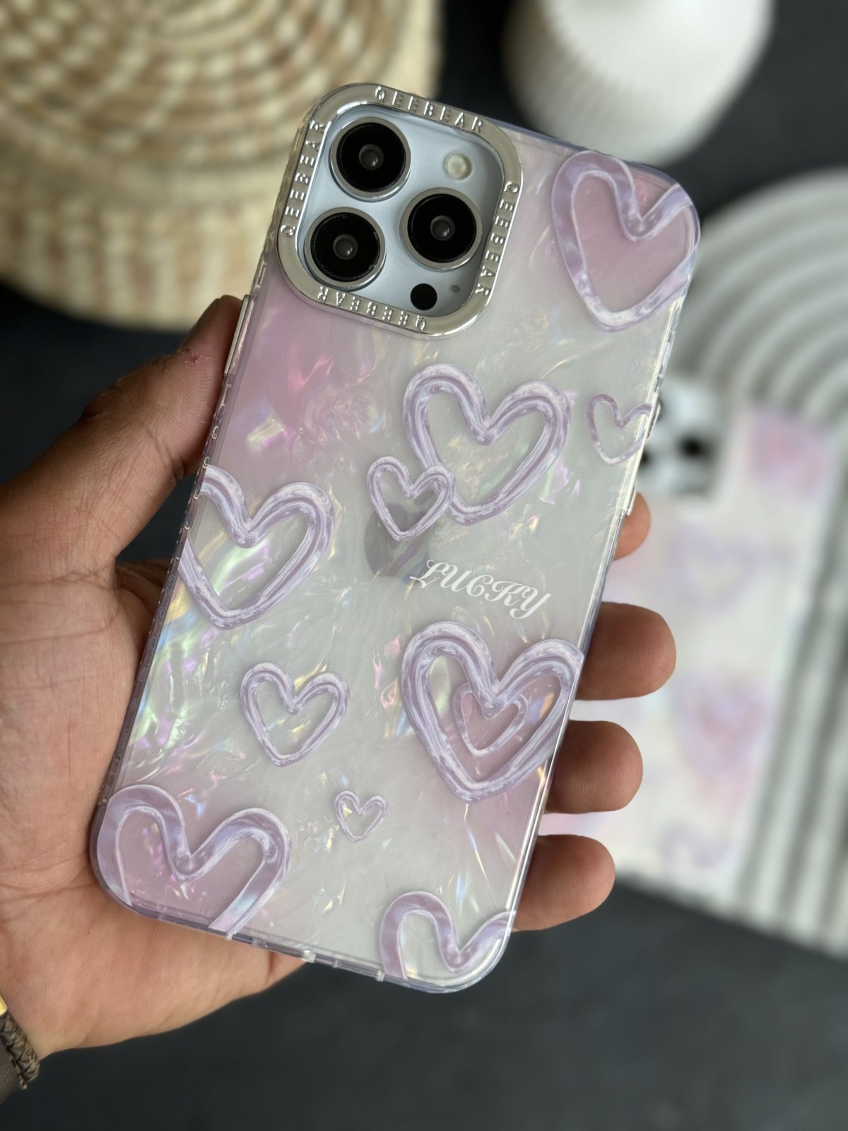 قاب موبایل ( آیفون – سامسونگ ) قلب مرکوری صدفی صورتی