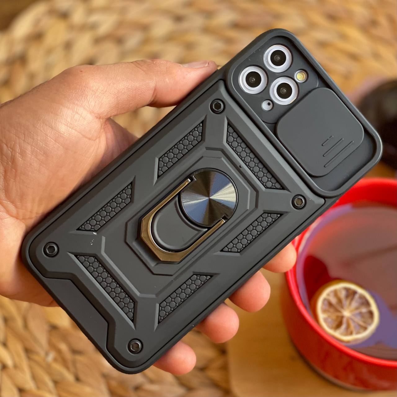 قاب موبایل آیفون شاک پروف محافظ لنز کشویی + حلقه
