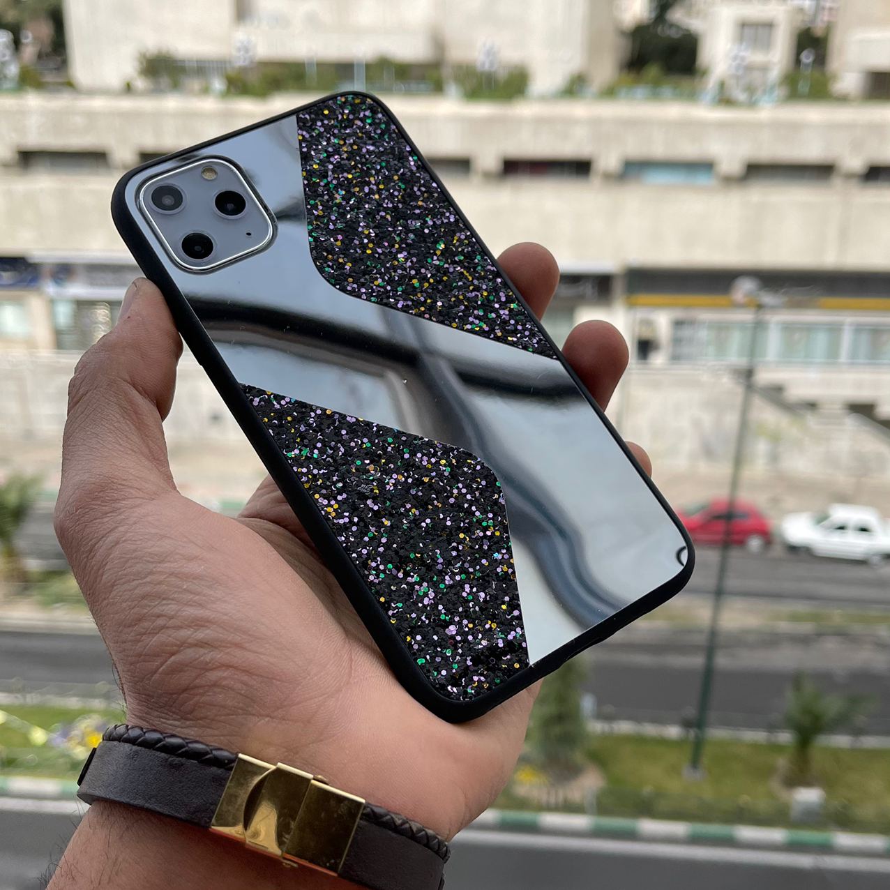 قاب موبایل آیفون طرح سواروسکی موج دار آینه و نگین