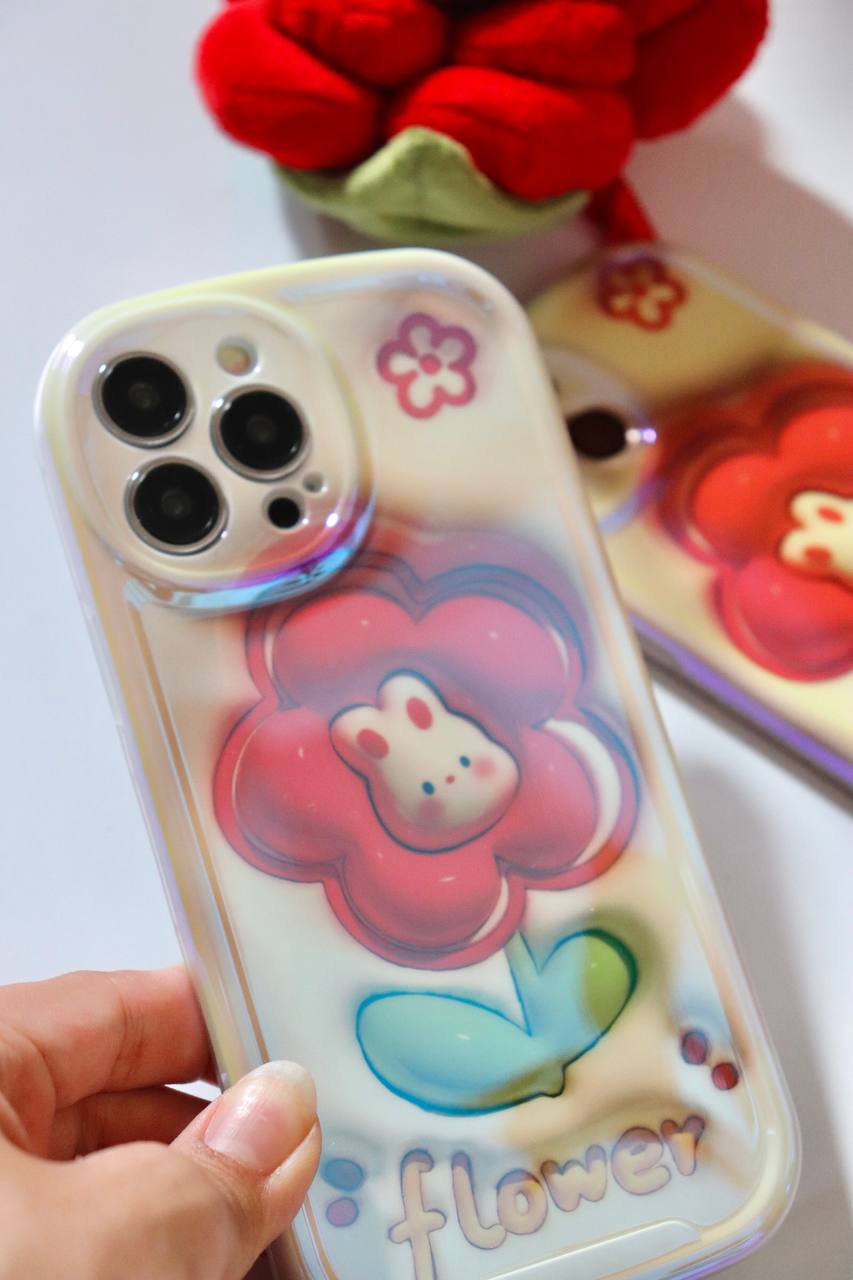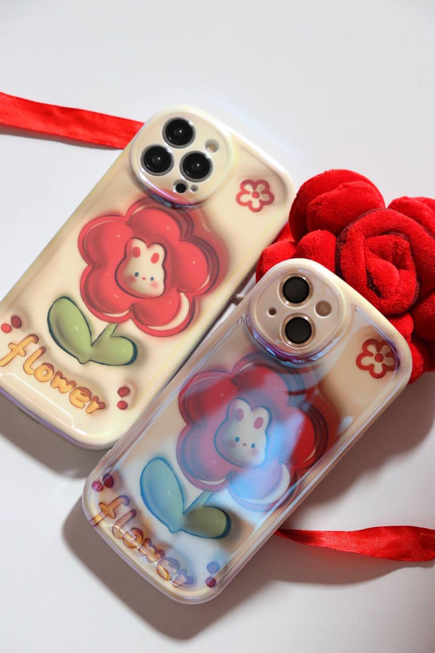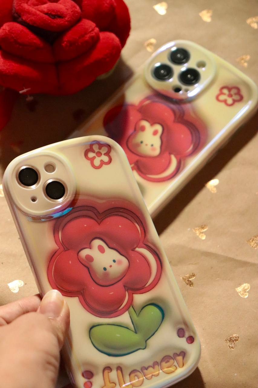 قاب موبایل آیفون فلاورز رزقرمز خرگوشی محافظ لنزدار