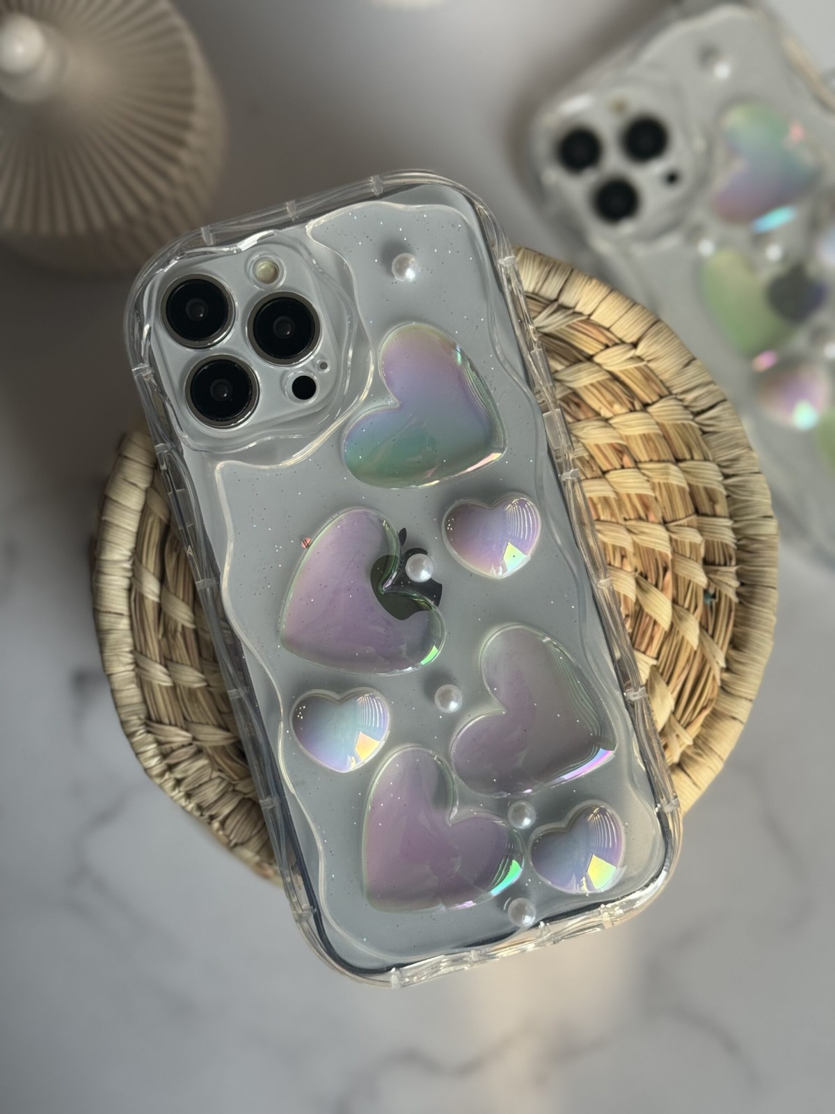 قاب موبایل آیفون قلب برجسته هفت رنگ پشت بیرنگ