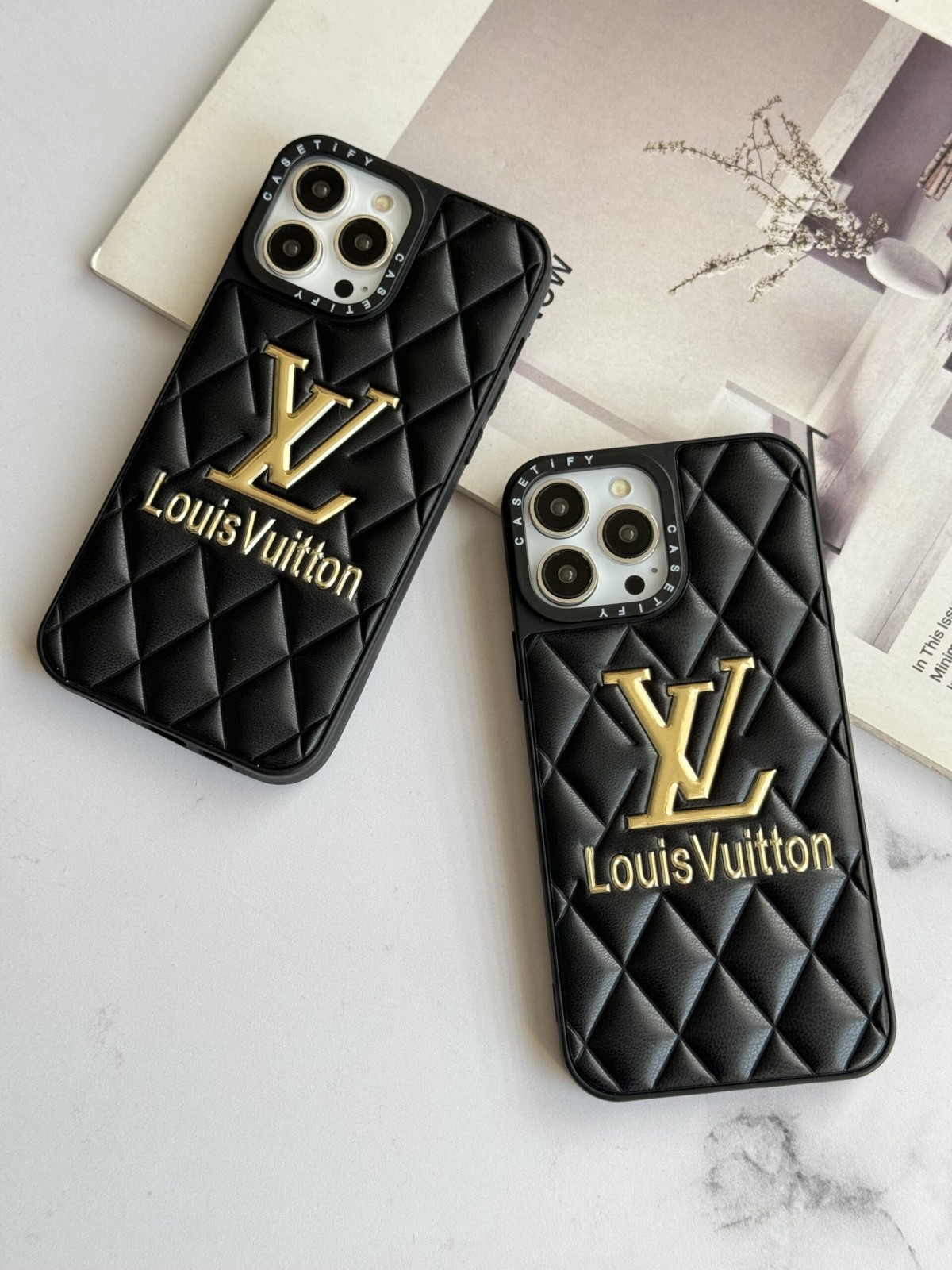 قاب موبایل آیفون لویی ویتون چرمی لوگو فلزی