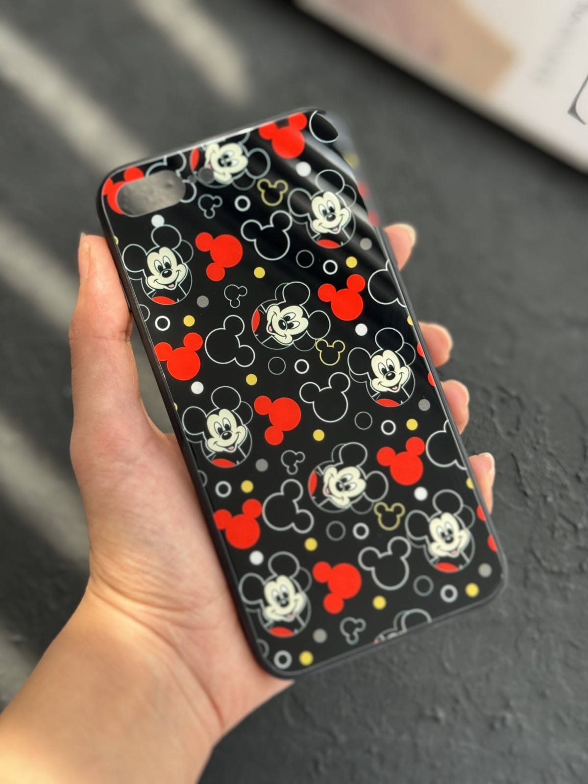 قاب موبایل آیفون میکی خالخالی پشت گلس ( 1023 )