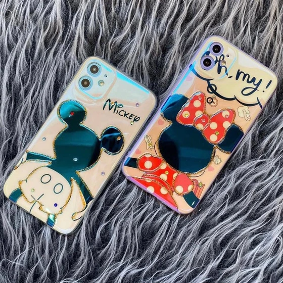 قاب موبایل آیفون میکی مینی نگین دار خط طلایی براق ( 2083 )