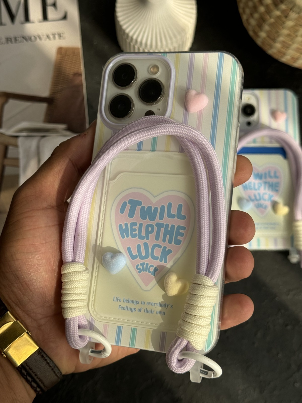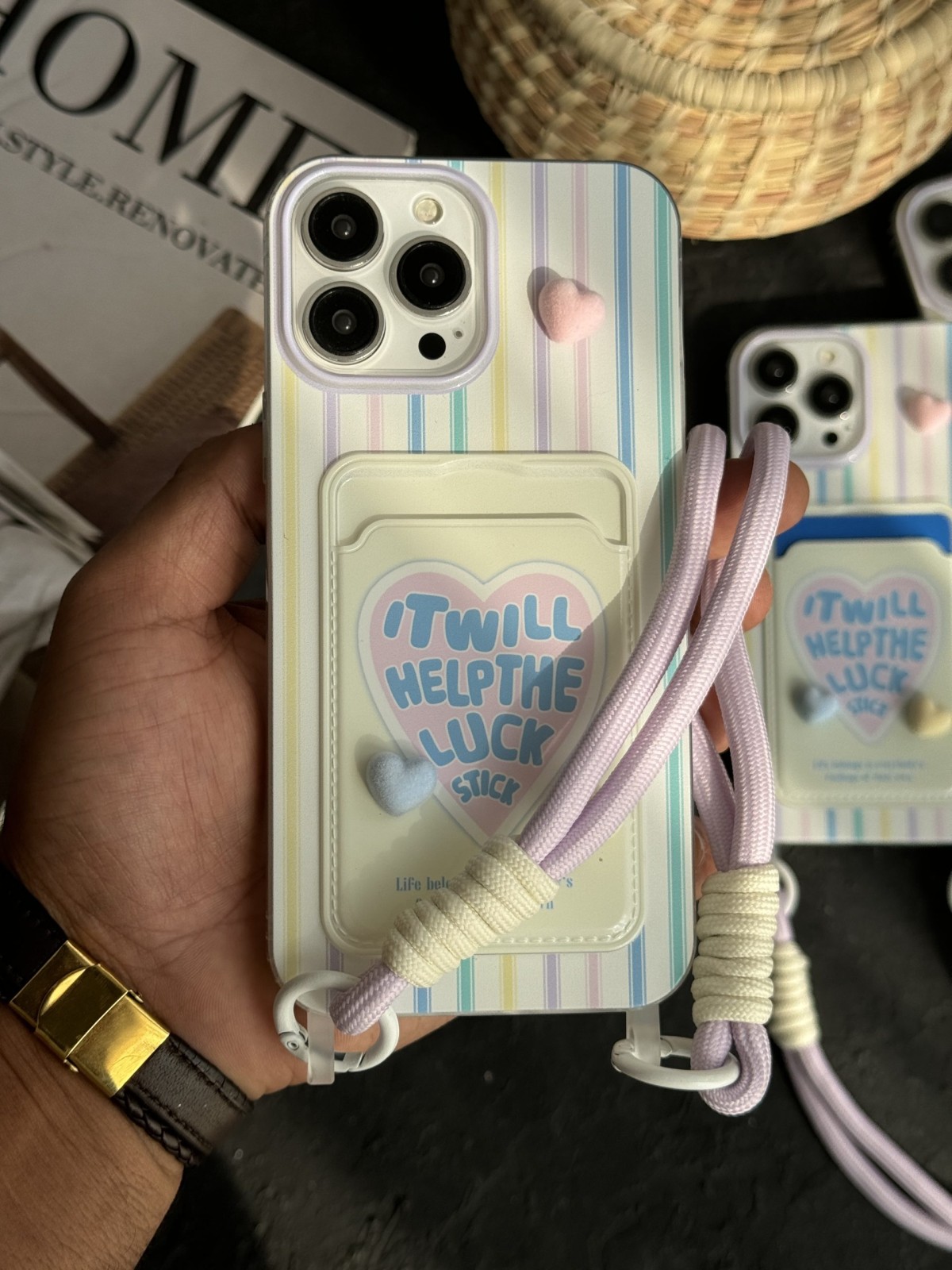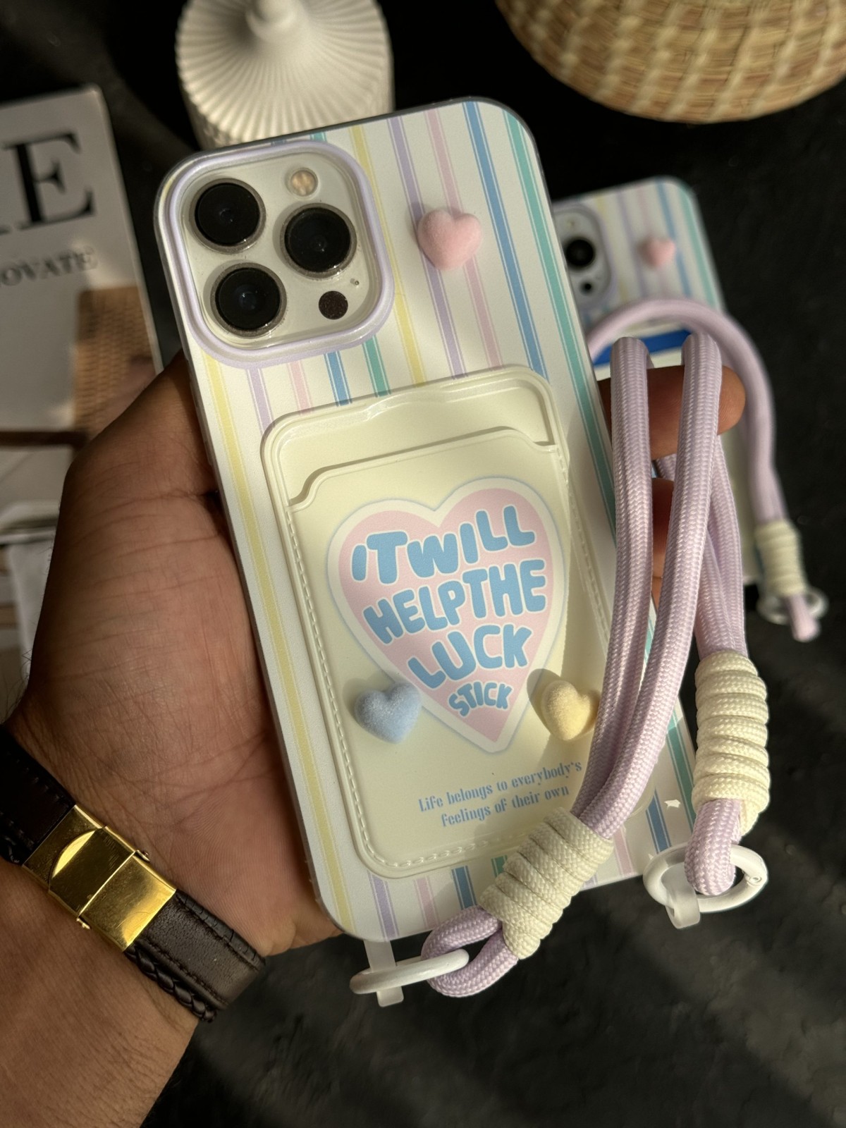 قاب موبایل آیفون ویولت جاکارتی قلب برجسته بنددار