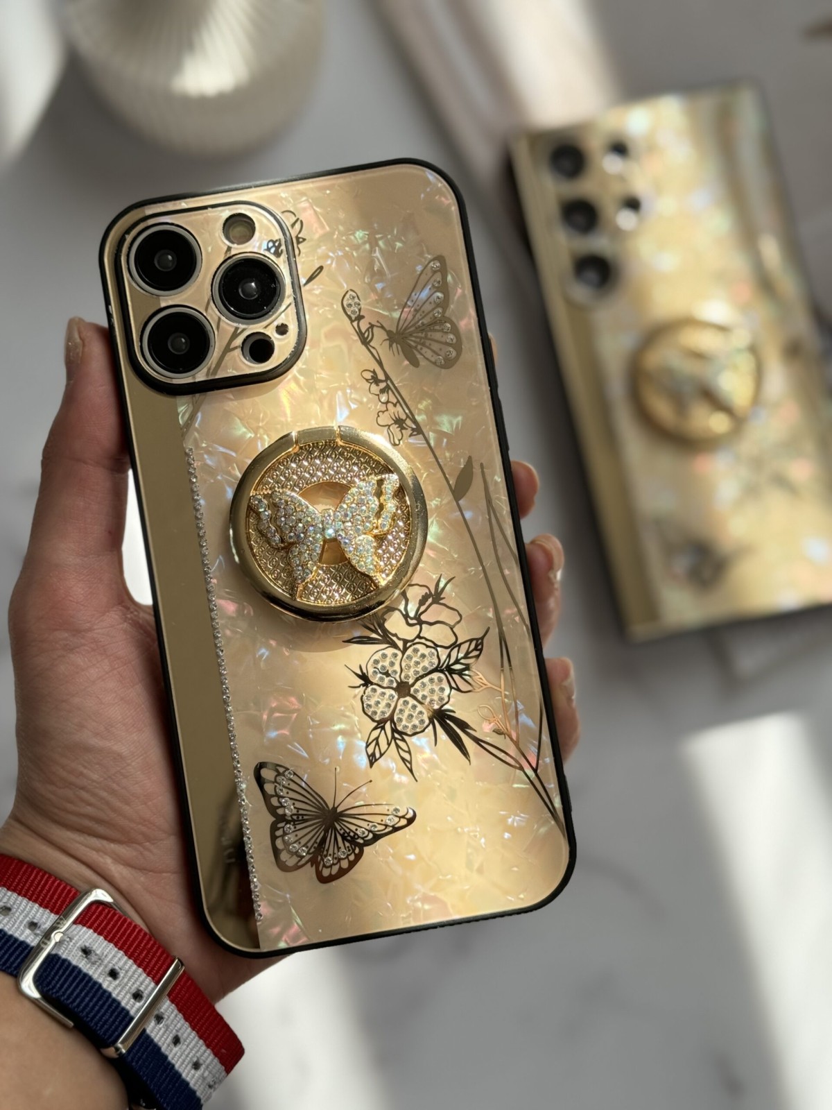 قاب موبایل آیفون پروانه نگین دار سواروسکی استندشو