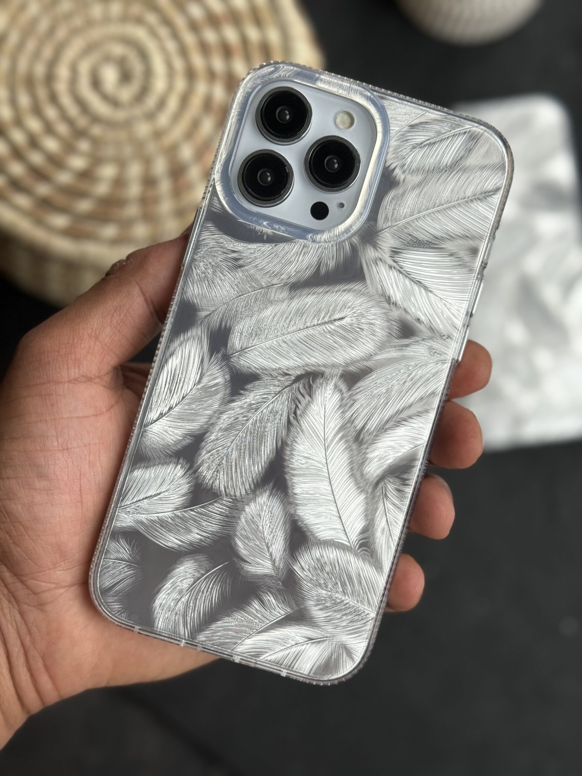 قاب موبایل آیفون پر مرغ عشق نقره ای هلوگرامی