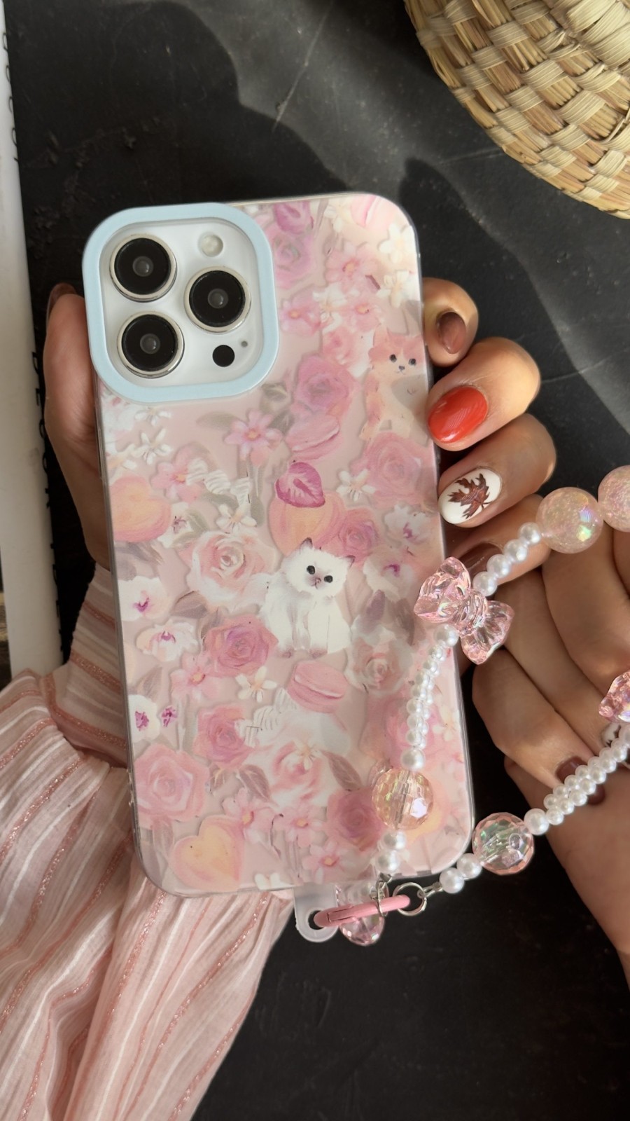 قاب موبایل آیفون کت گاردن گربه سفید صورتی ( بدون بند )