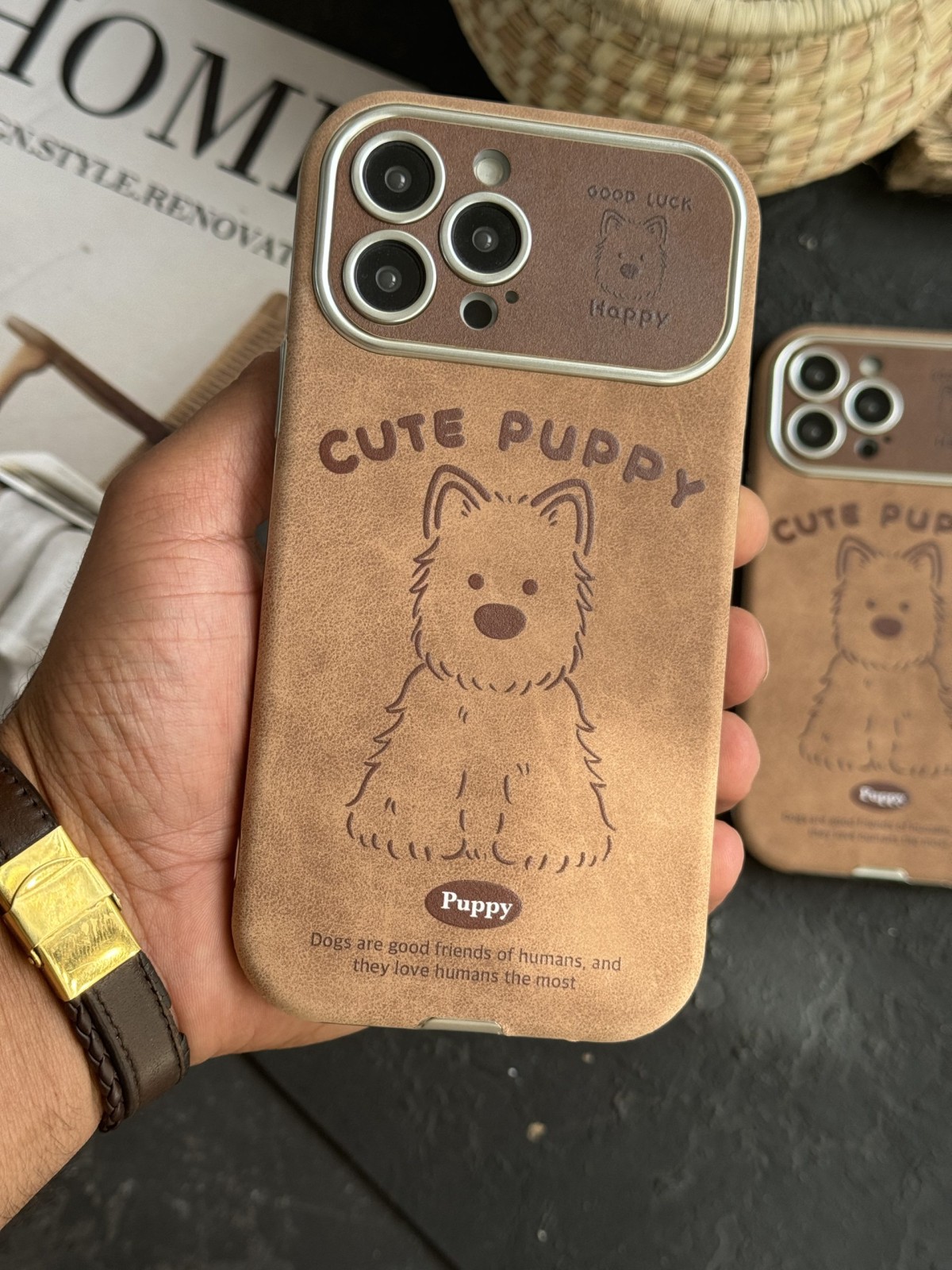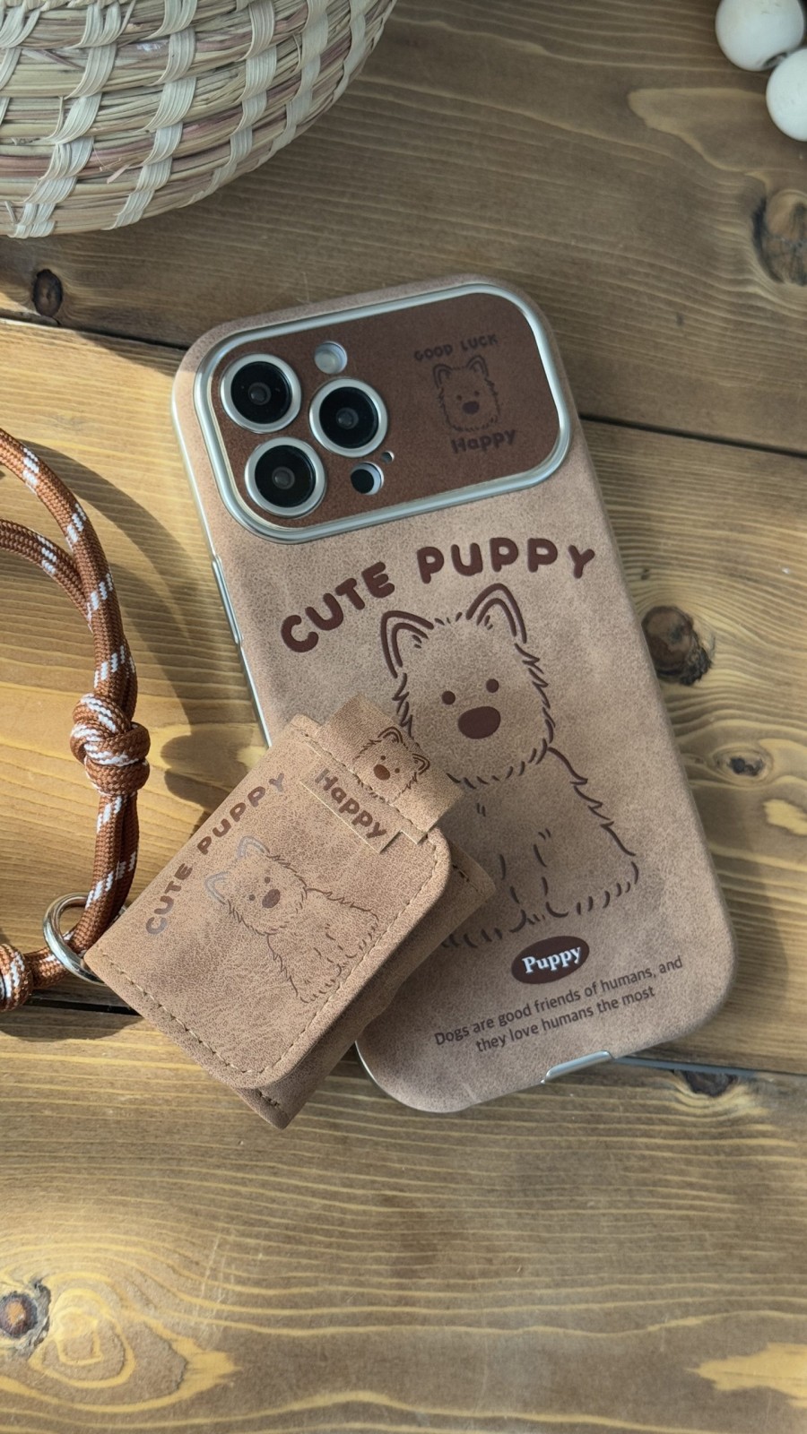 قاب موبایل آیفون کیوت پاپی چرم قهوه ای سنگشور