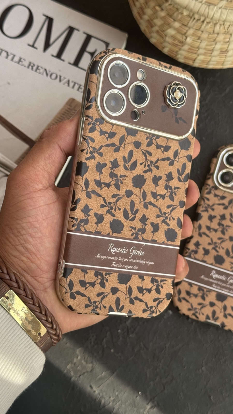 قاب موبایل آیفون گل رز رمانتیک گاردن قهوه ای