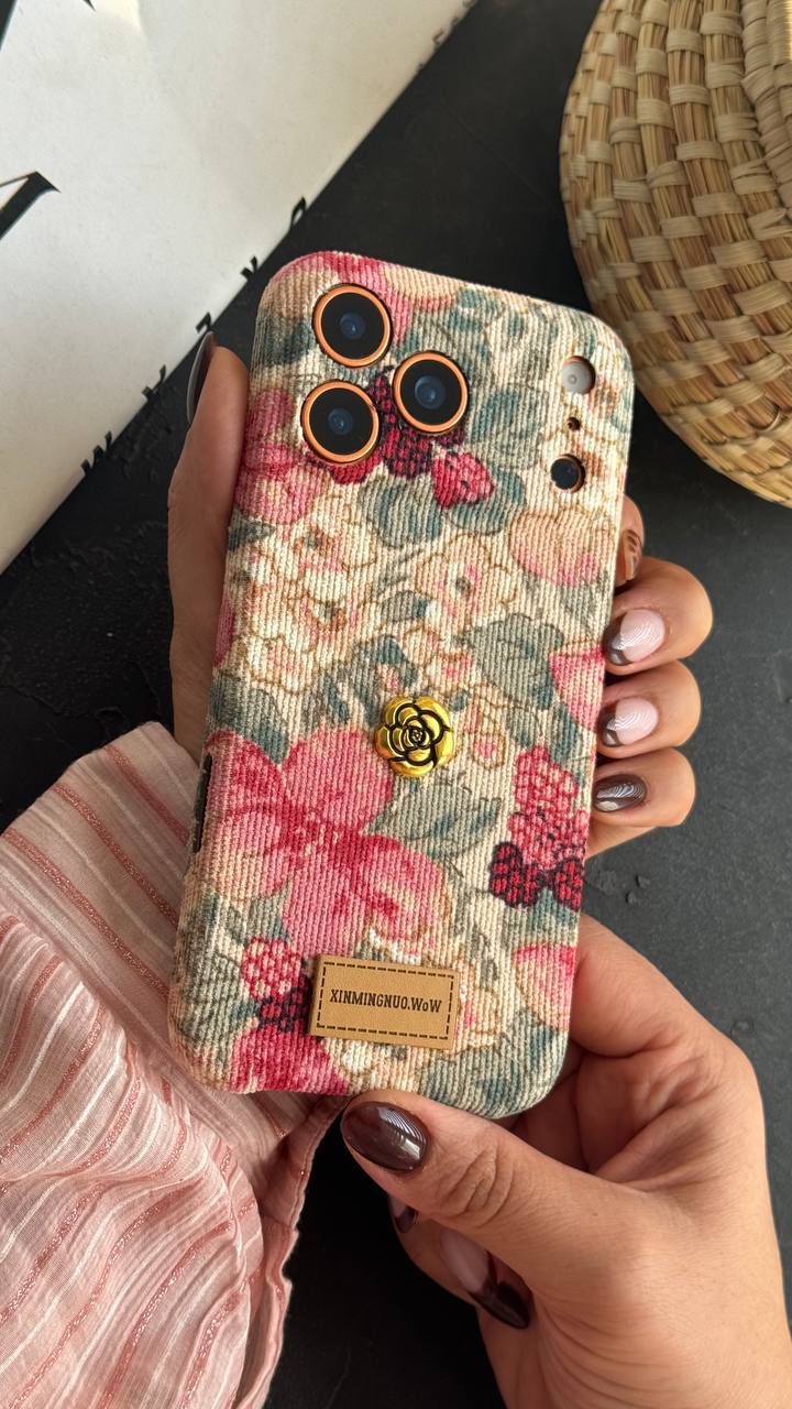رنگ‌های گرم و ملایم گل‌های صورتی و کرم در کنار بافت پارچه‌ای، حس لطافت و زیبایی را منتقل می‌کنند. این قاب انتخابی عالی برای کسانی است که به جز محافظت از گوشی، به زیبایی و هماهنگی استایل خود نیز اهمیت می‌دهند.