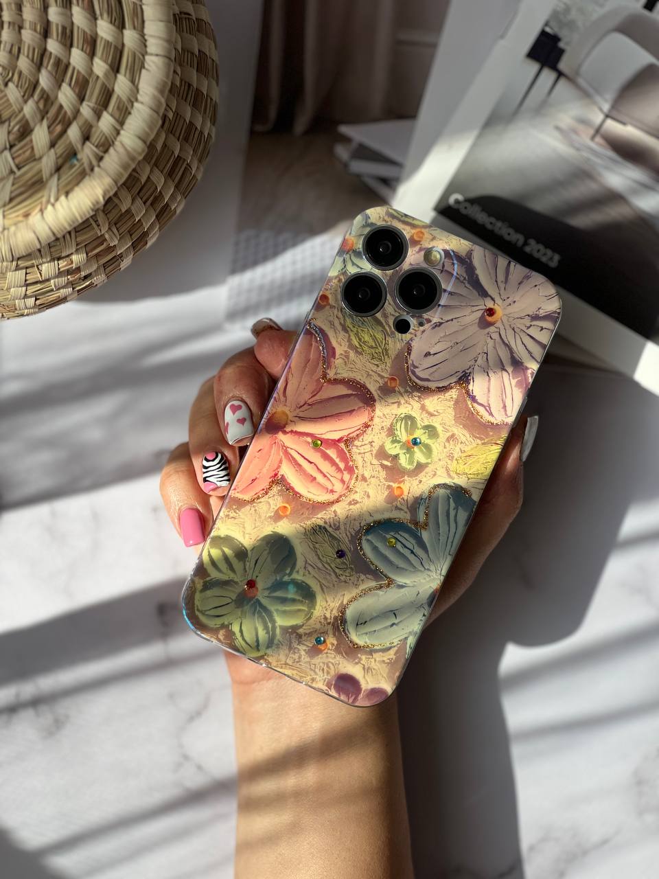 قاب موبایل ( آیفون _ سامسونگ ) گل آبرنگی ژله ای سه بعدی