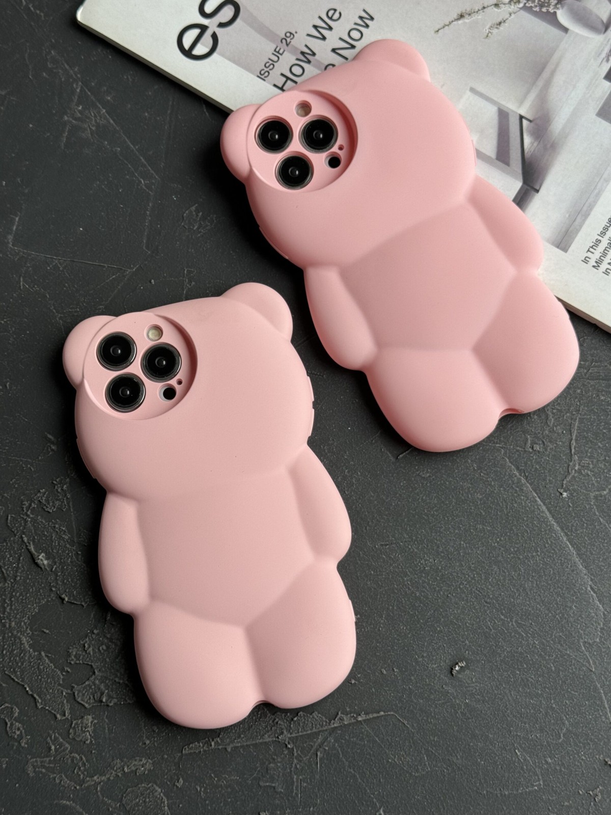 قاب موبایل خرس مینیمال پاستیلی سیلیکونی صورتی