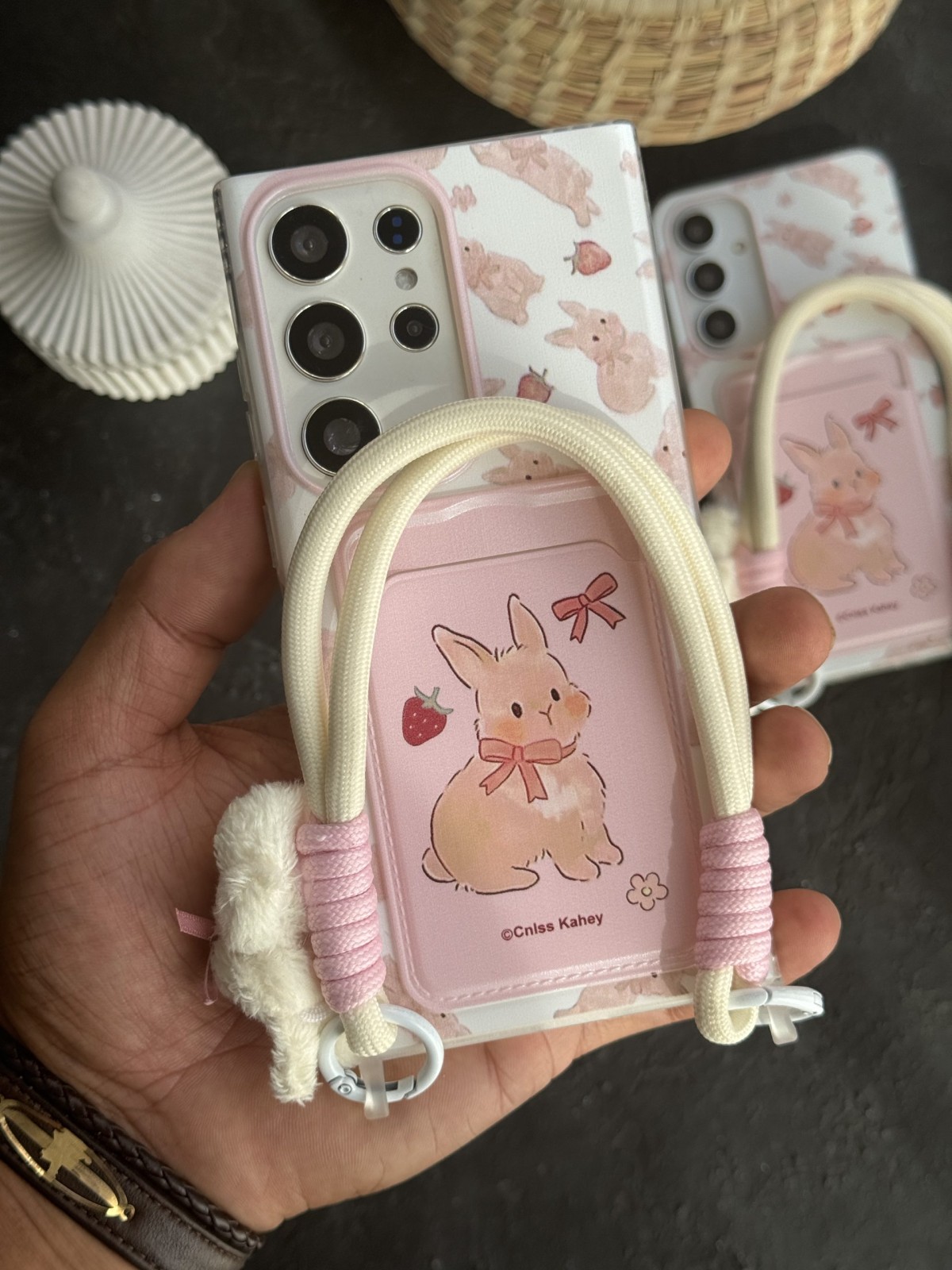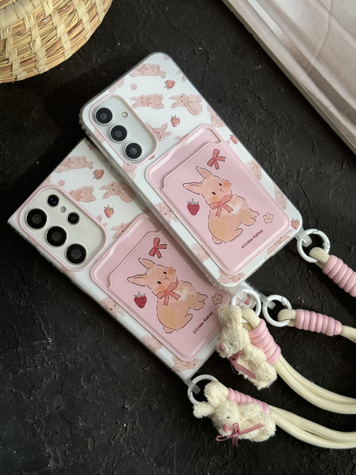 قاب موبایل سامسونگ خرگوش توت فرنگی پاپیون آویز و بند عروسکی