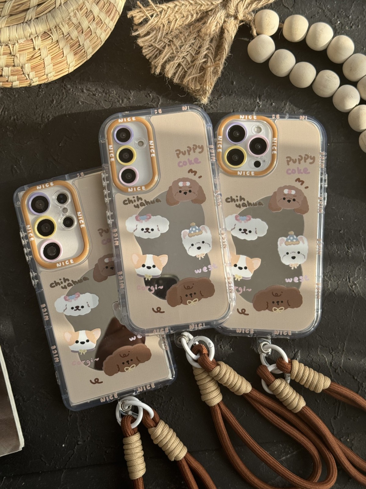 قاب موبایل سامسونگ سگ پاپی شکلاتی آیینه ای بند کوتاه