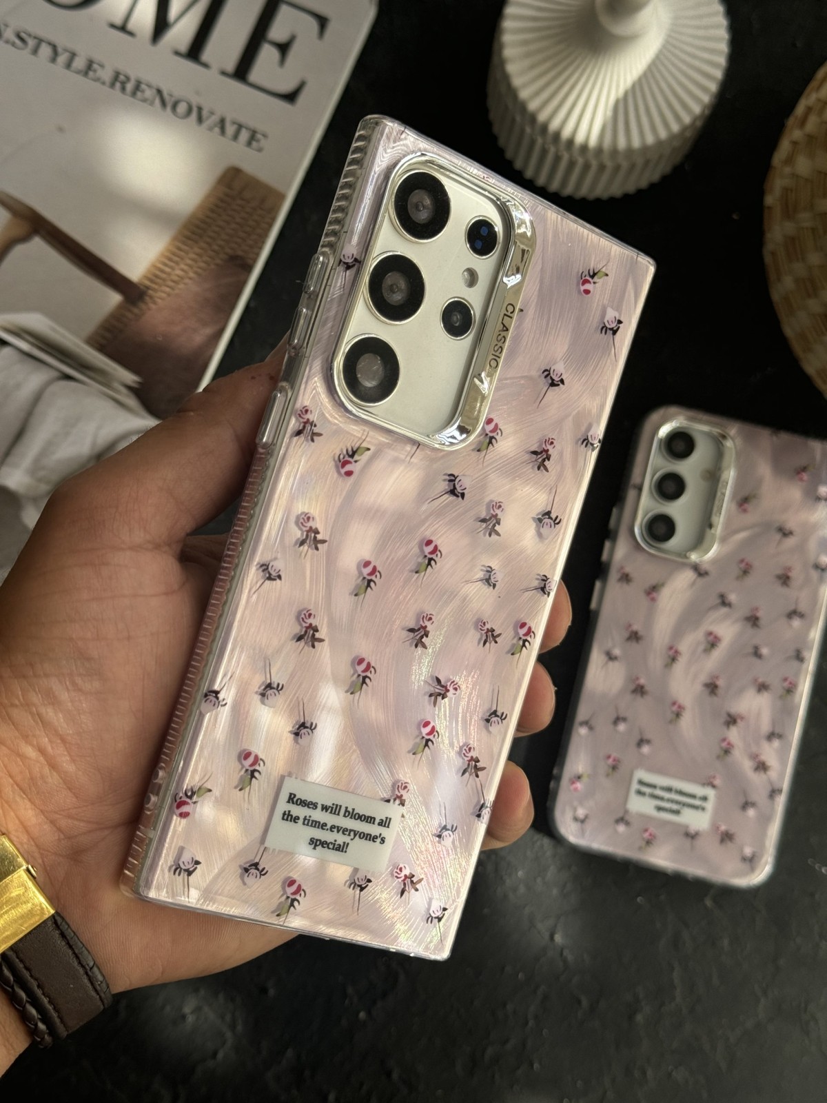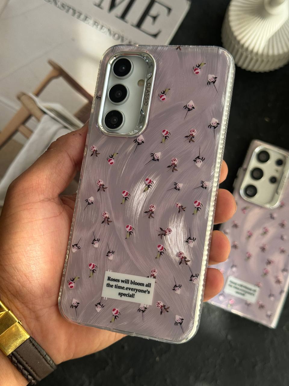 قاب موبایل سامسونگ گل رز اسپشیال کلاسیک شاینی صورتی