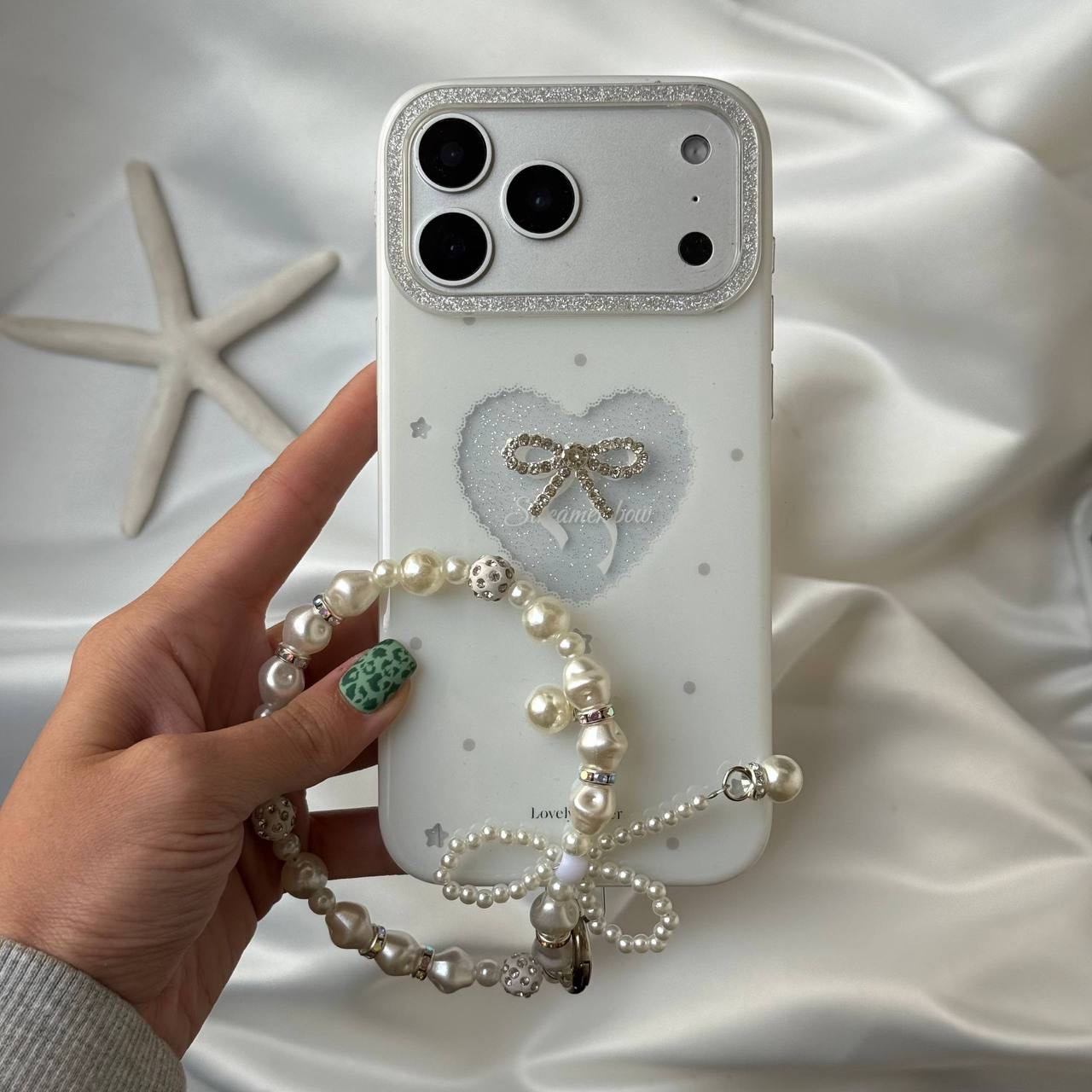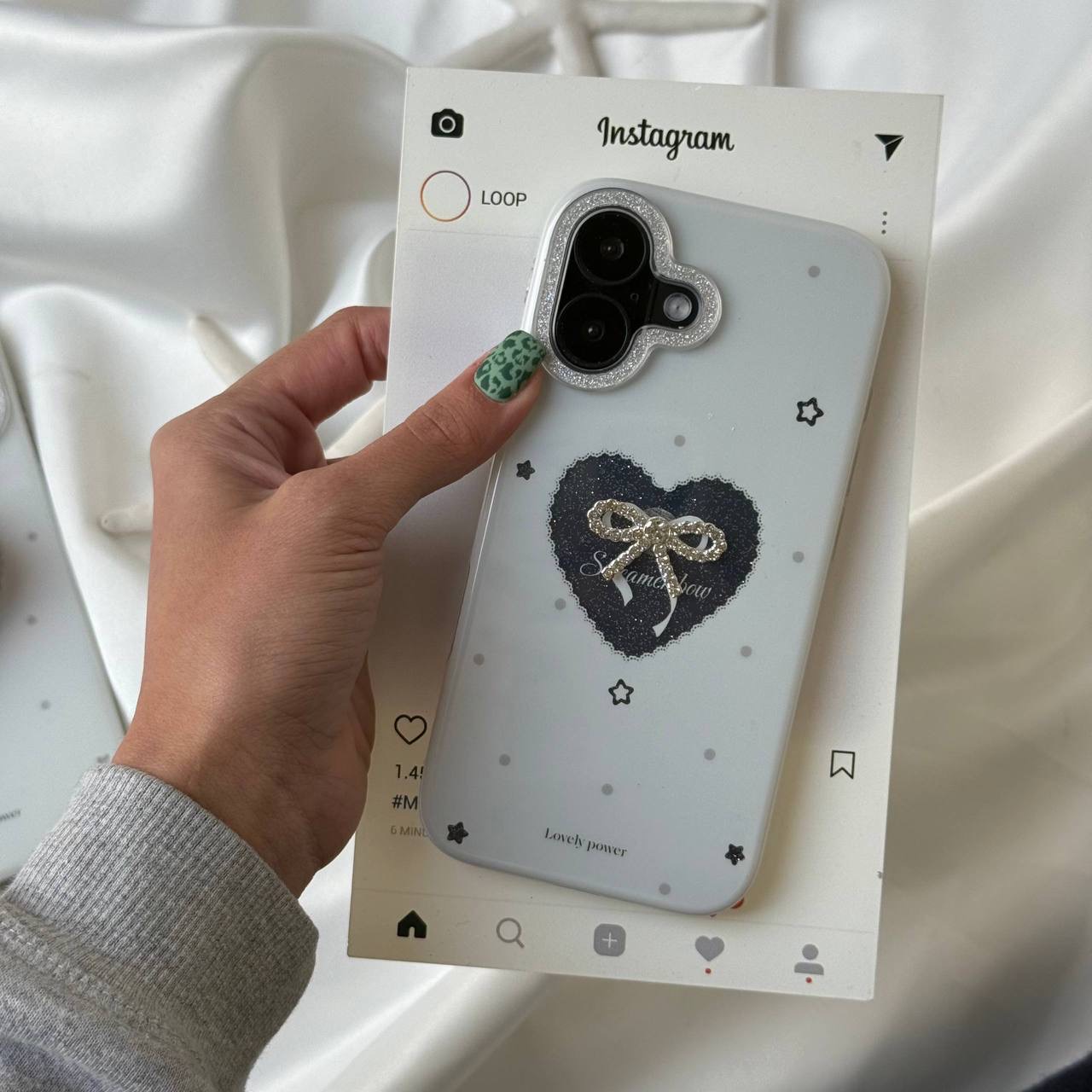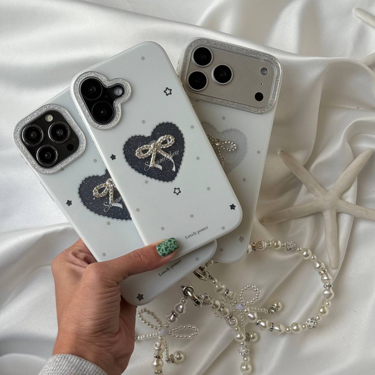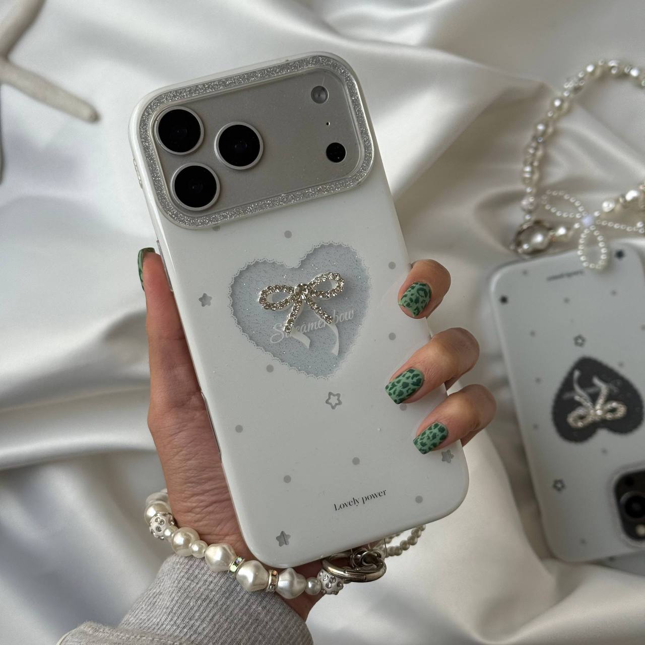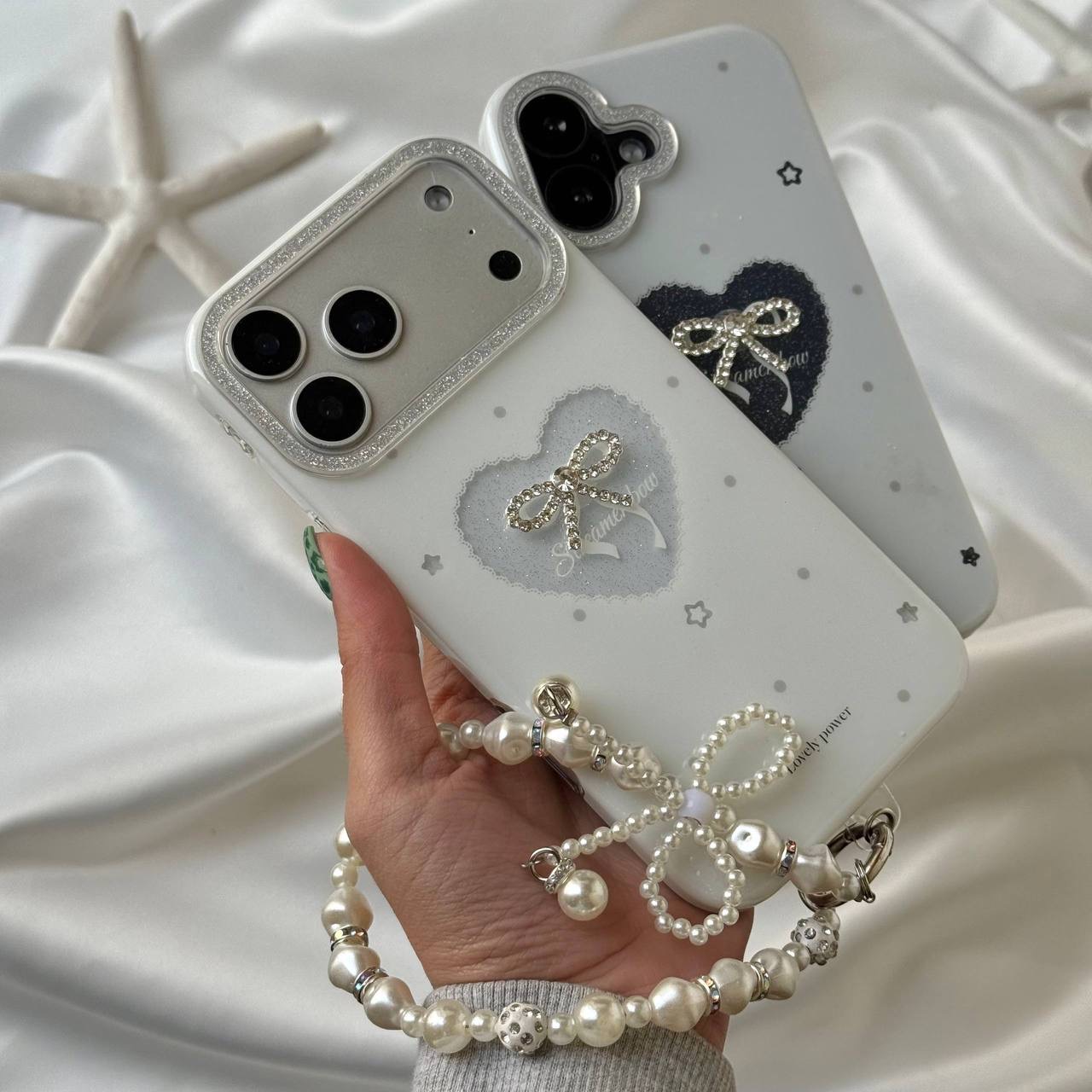 قاب موبایل قلب و پاپیون شاین اکلیلی + بندست
