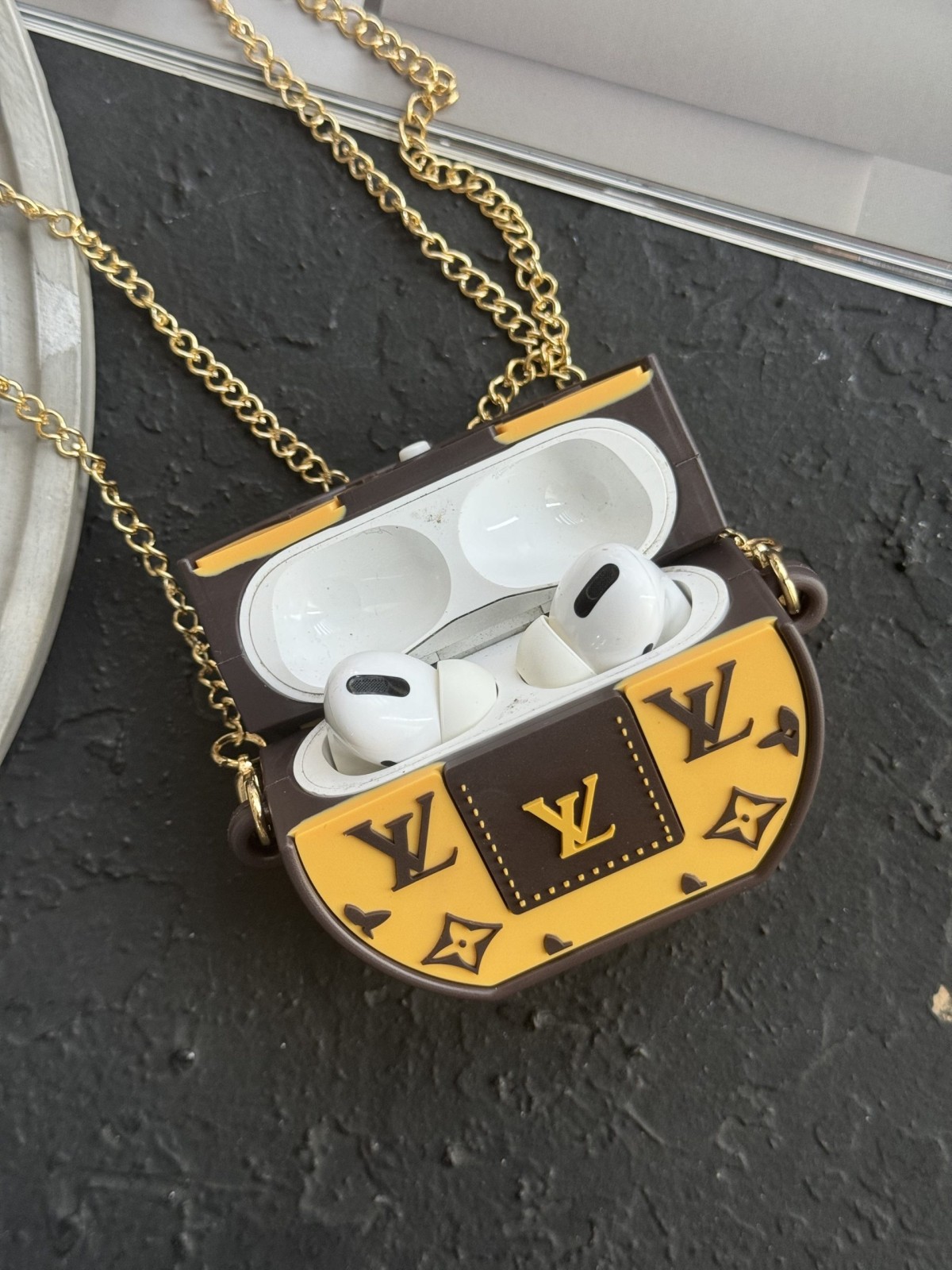 کاور ایرپاد لویی ویتون گرد سیلیکونی + بند بلند زنجیری