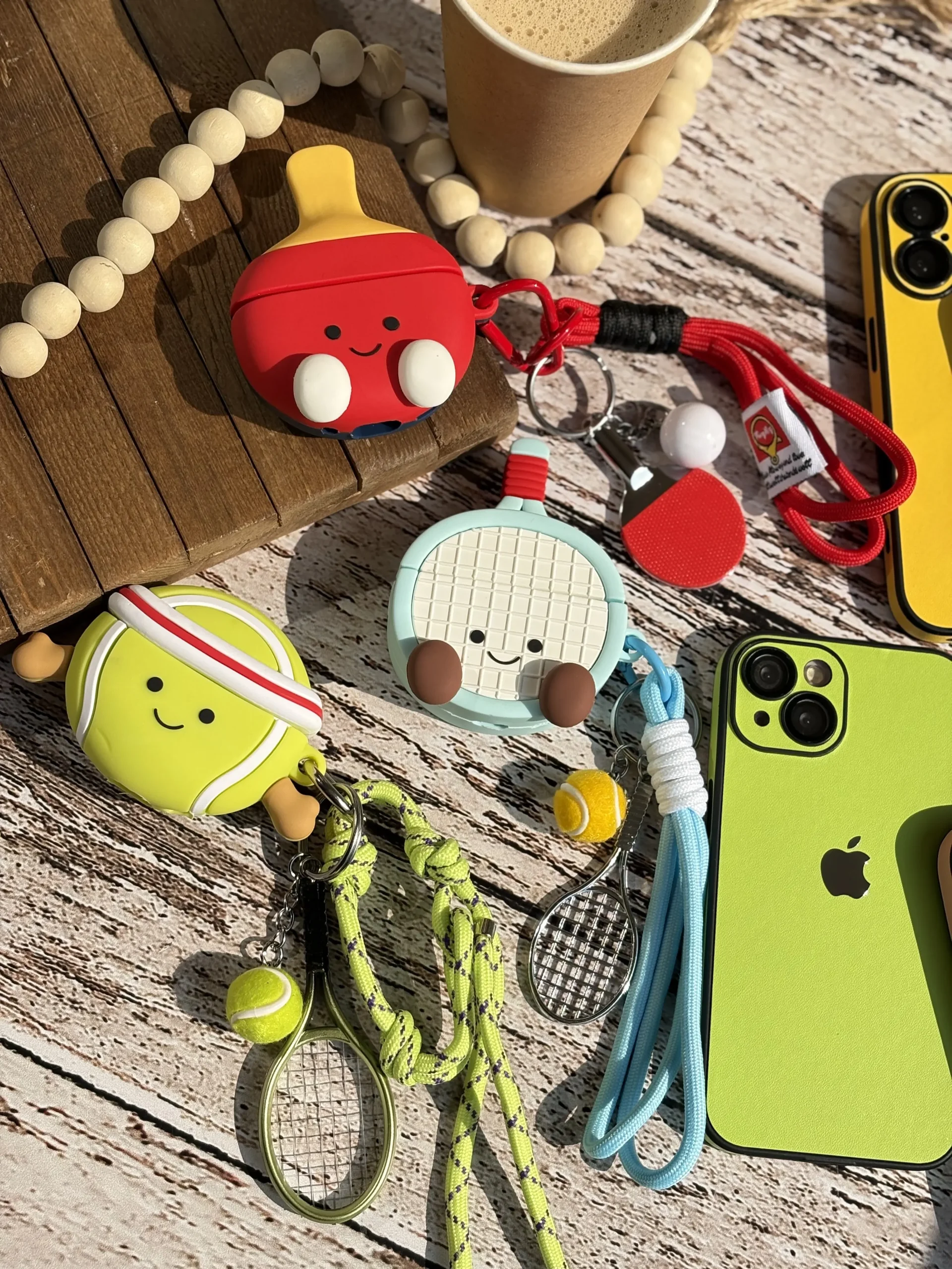پینگ پونگ (قرمز) ,راکت تنیس ( آبی) ,توپ تنیس (سبز) |