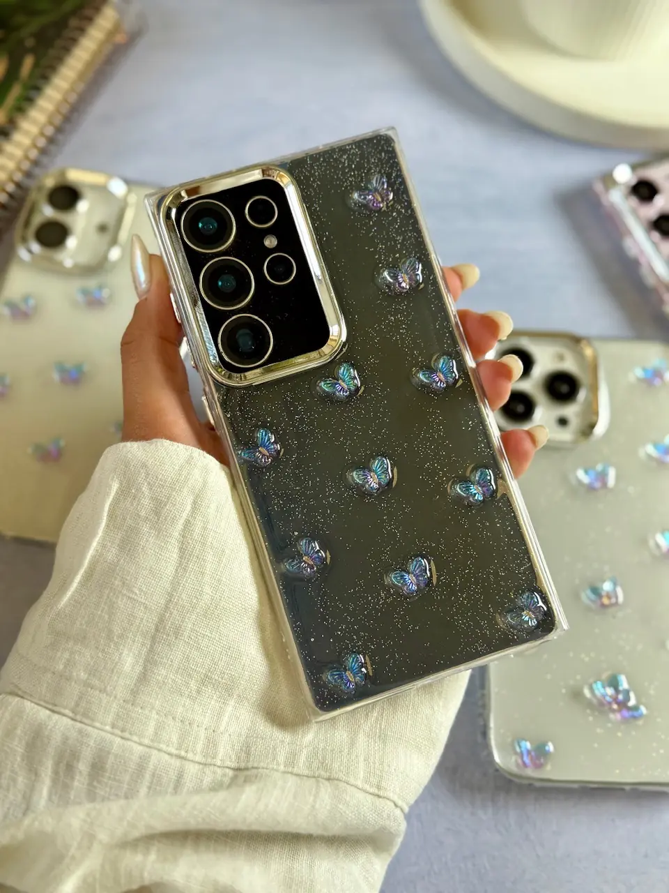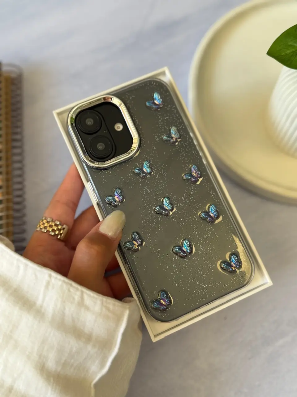قاب پروانه رنگی زمینه شاینی (کدC2108)