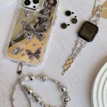 قاب پروانه آینه ای با آویز و محافظ لنز نگین دار (کدC1786)