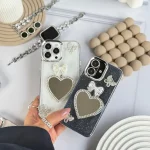 قاب شاینی قلب آینه ای با محافظ لنز رینگی نگینی (کدC1889)